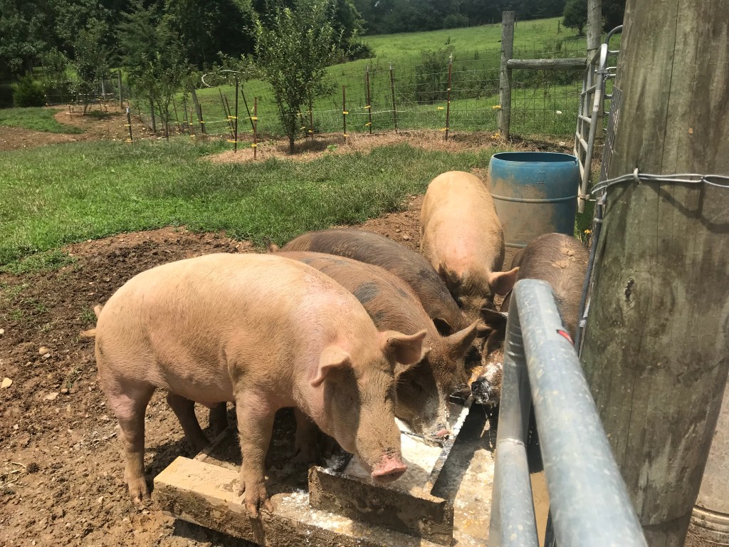 Even though I’m not raising Hammy myself, I did go out to see him and got to chat with the seller about her process. She been raising pigs for three years and makes it look so easy. Hers are pasture raised and get pig feed, corn, and clabbered milk from her cow. When she poured the milk into the trough, they almost laid down in it and just slurped for five minutes. They we’re so happy! It’s a sloppy process, but they obviously love it.
