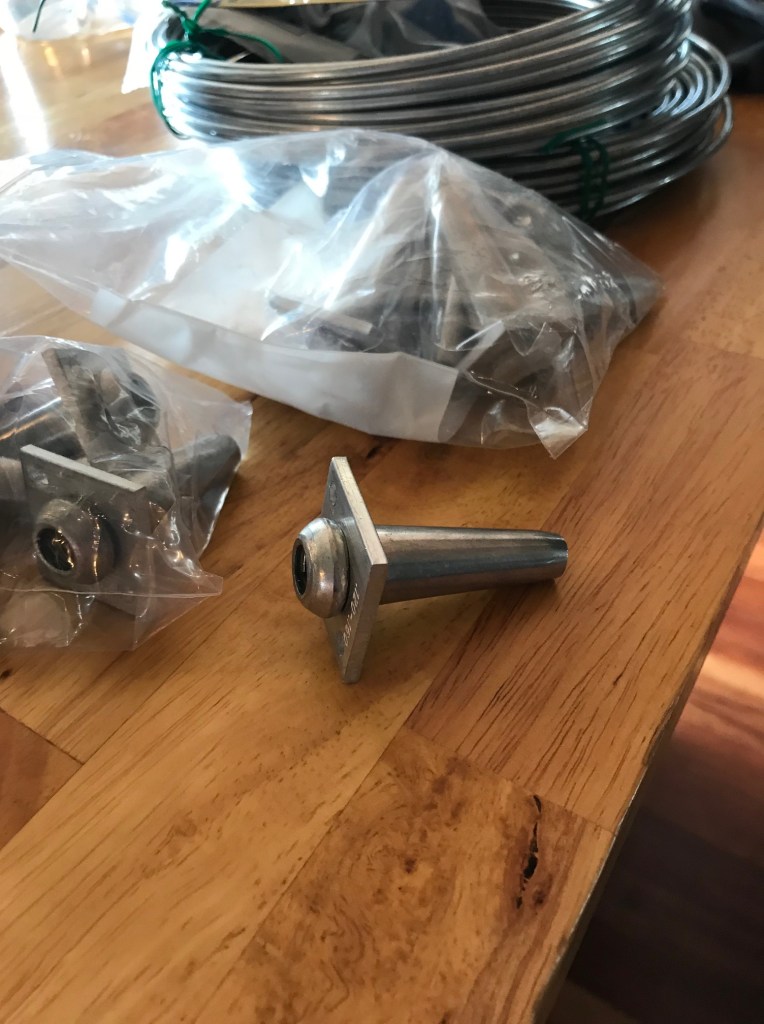 We poked 9 gauge wire through the holes and secured it on the outside of the posts with Anchor Vises. The whole process took about an hour for four posts. These anchors are amazing and simple! They are worth every penny.
