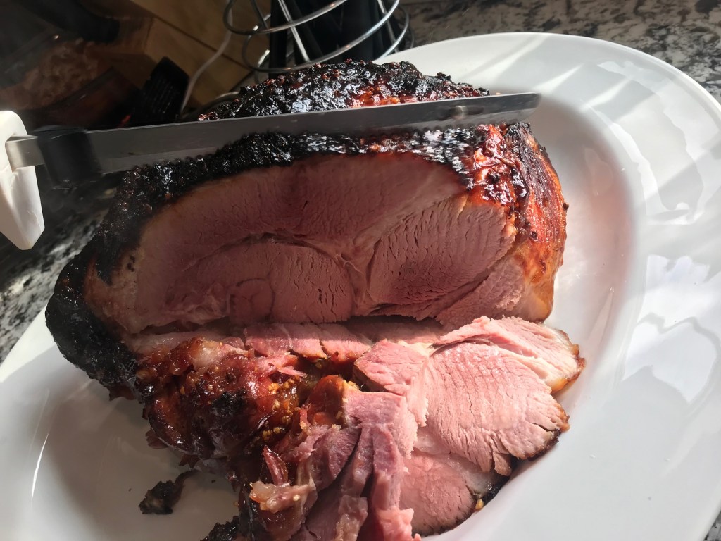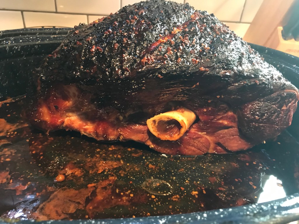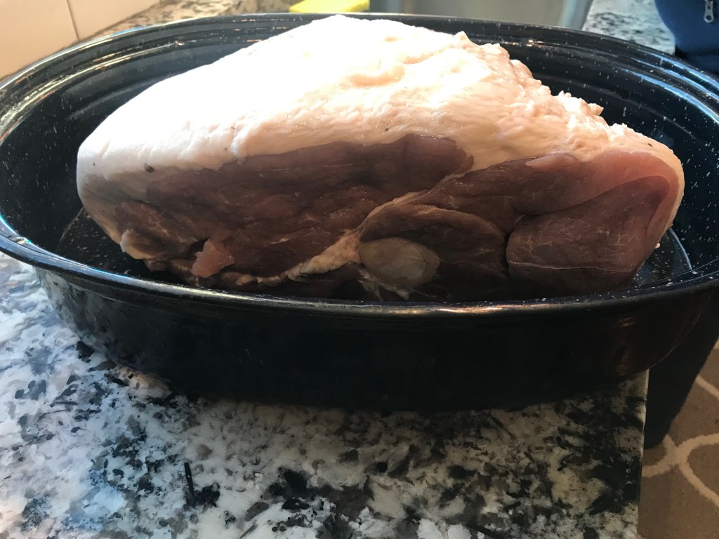 When we had our hog processed, I asked the butcher to cut the hams in half. That is probably the wisest thing I’ve ever done in my entire life. Do you know how big a whole ham is? Geez. The answer is “HUGE.”