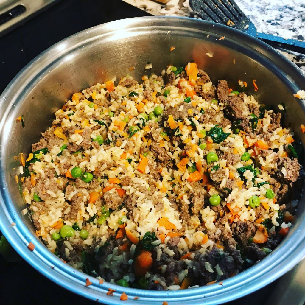 Upon eating better and avoiding the grocery store for our own health, we decided to extend that health to our little pup, and after much research and chats with the vet, we’ve decided on the following recipe. She loves it! (PLEASE CHECK WITH YOUR VET BEFORE CHANGING YOUR PUP’S DIET.)