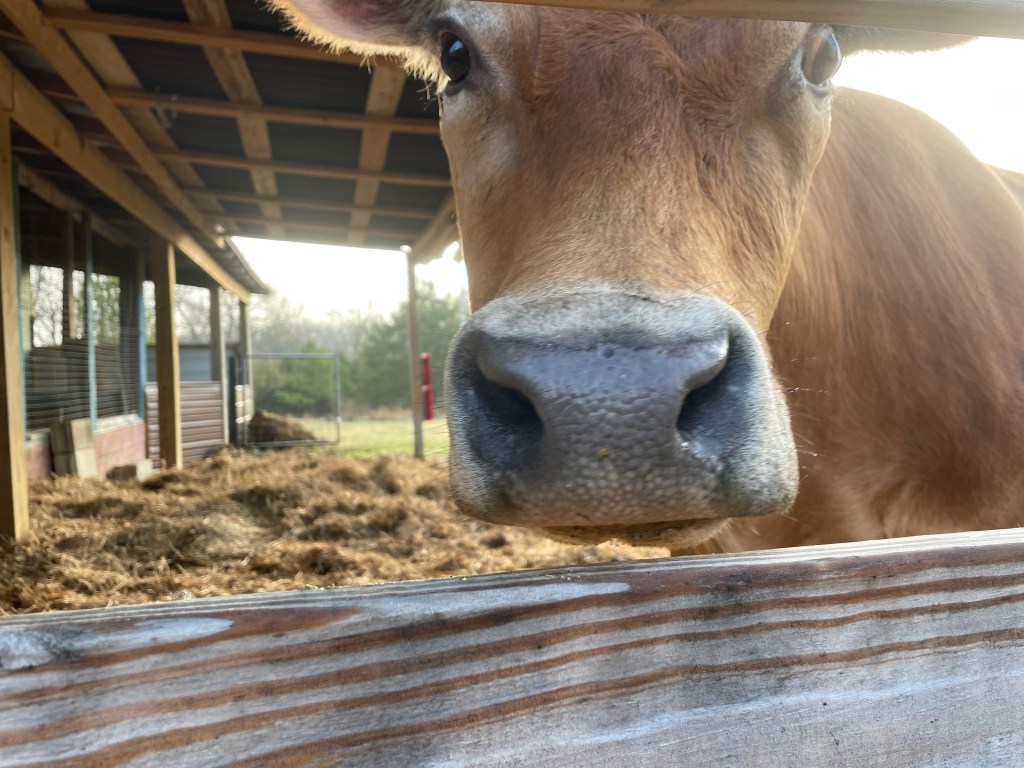 We paid top dollar for a healthy milk cow and we now just have a pet, but at least we saved her. I think she was severely let down by two different owners, so she will stay here and be taken care of properly. Her baby is in a different field on the farm for now, but goes into a stall where they can see each other and lick each other’s faces. After Belle is completely dried off and Callie is completely weaned, they will be together for the rest of their lives. Stewardship of livestock is so very important, and sometimes humans suck at it.