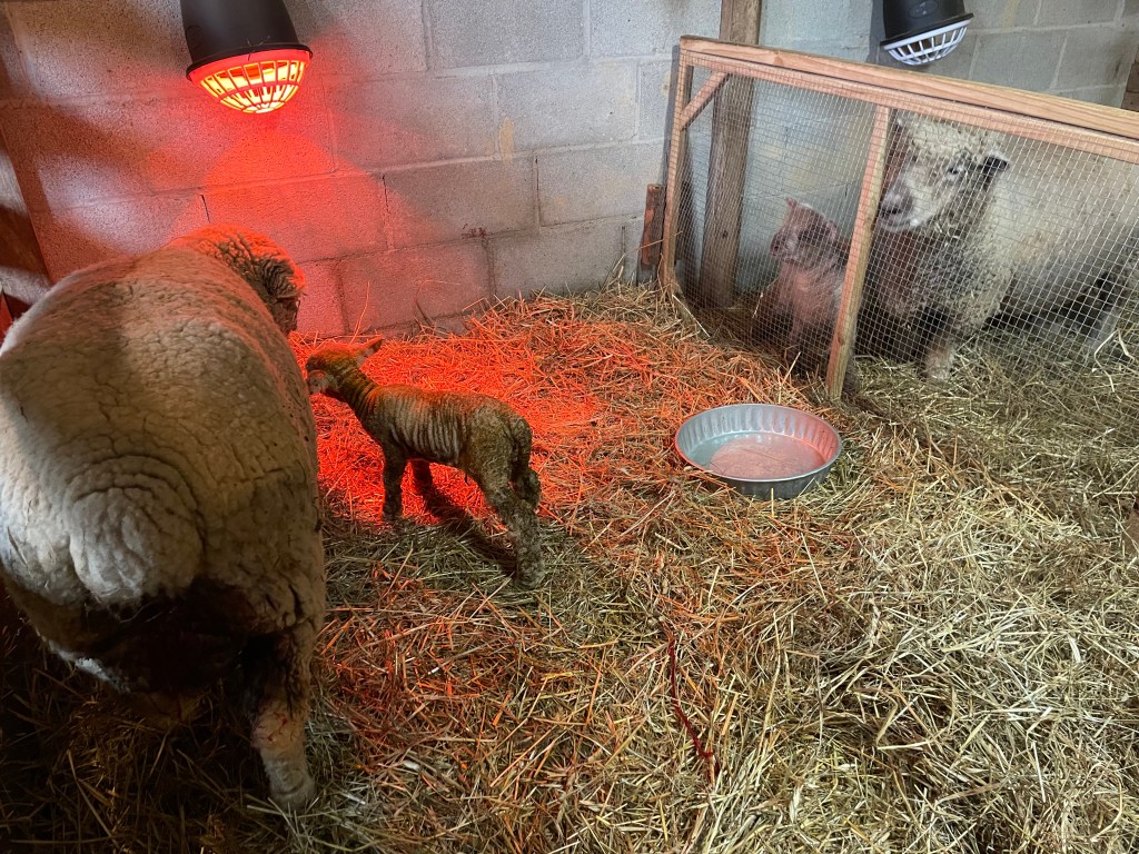 Bluebelle distanced herself from the flock on January 30th, so I was sure she’d lamb any minute. I waited and waited, and finally February 7th, she lambed another single ewe that we named Felicity! Since Bluebelle is a new momma, she seemed a little bewildered by the whole ordeal and it took about an hour for her to allow the baby to nurse. She has warmed up to the idea after a few hours, and baby Felicity is doing well.